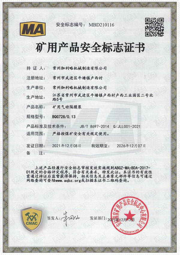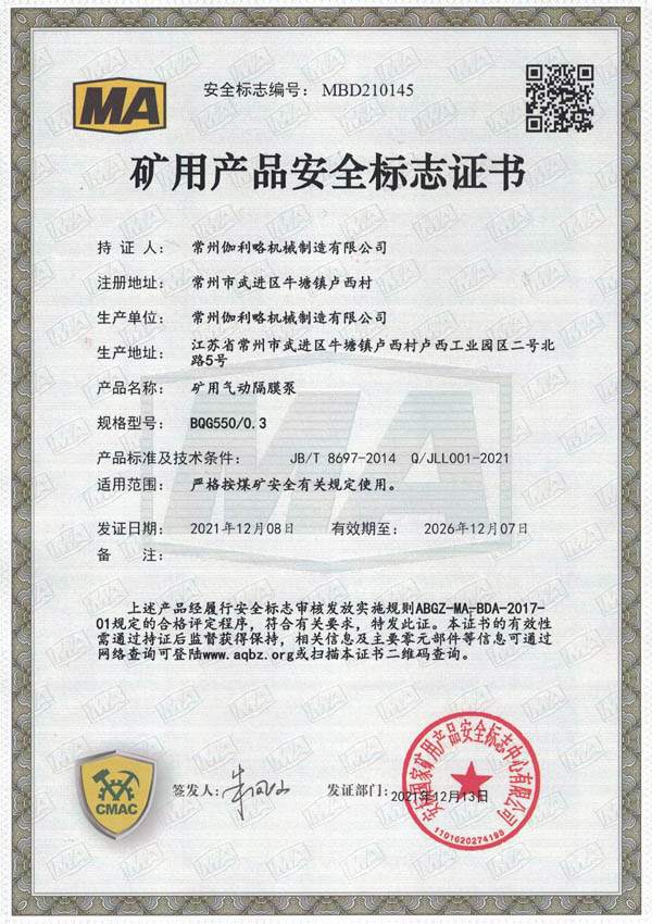 • 礦用安全標(biāo)志證書(shū)-BQG550/0.3